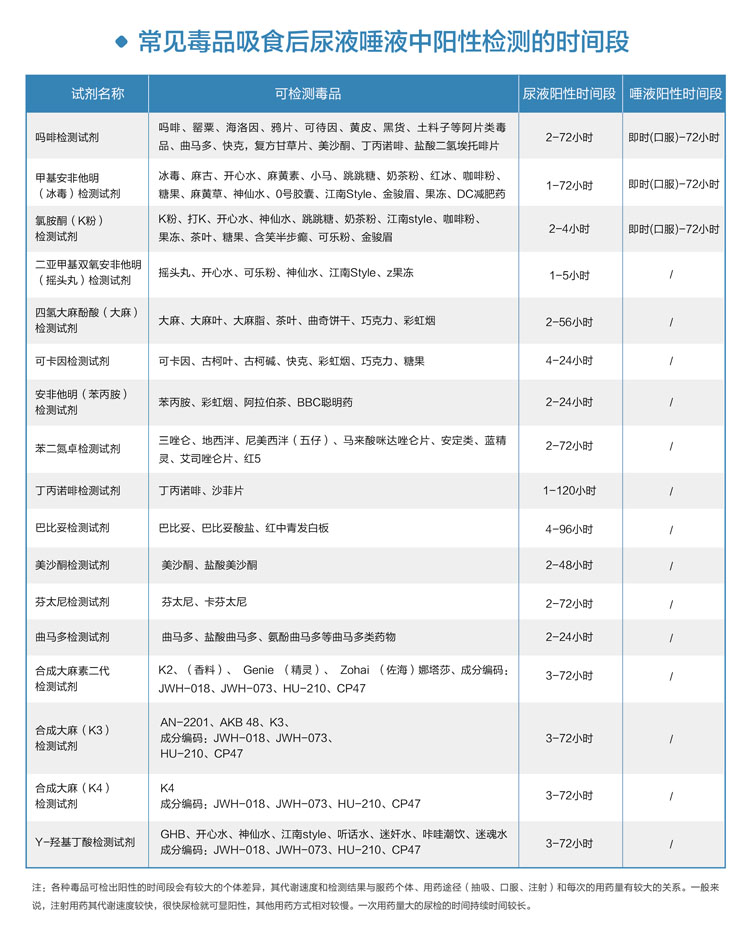 常见毒品吸食后尿液唾液中阳性检测的时间段